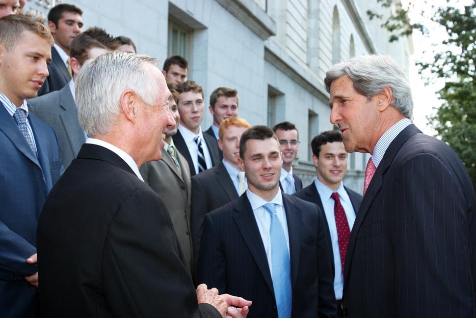 Gionta ’01 did indeed go on to become one of BC’s greatest athletes ever. As captain, he led the Eagles to the NCAA championship in 2001, BC’s first since 1949. He then played for sixteen seasons in the NHL. When Gionta heard York was retiring, his first reaction was shock. “That kind of longevity, that kind of run, that kind of success, it’s unsurpassed in hockey,” he said. But the lesson that has stuck with him after playing for York all those years ago has nothing to do with hockey. “He reinforces how you treat people,” Gionta said. “Whether it is the athletic director, or it’s the security guard when you walk in, or it’s the janitor, the trainer, the equipment manager, everyone is on the same level. No one is above anyone and no one is below anyone, and everyone is to be treated with respect.”